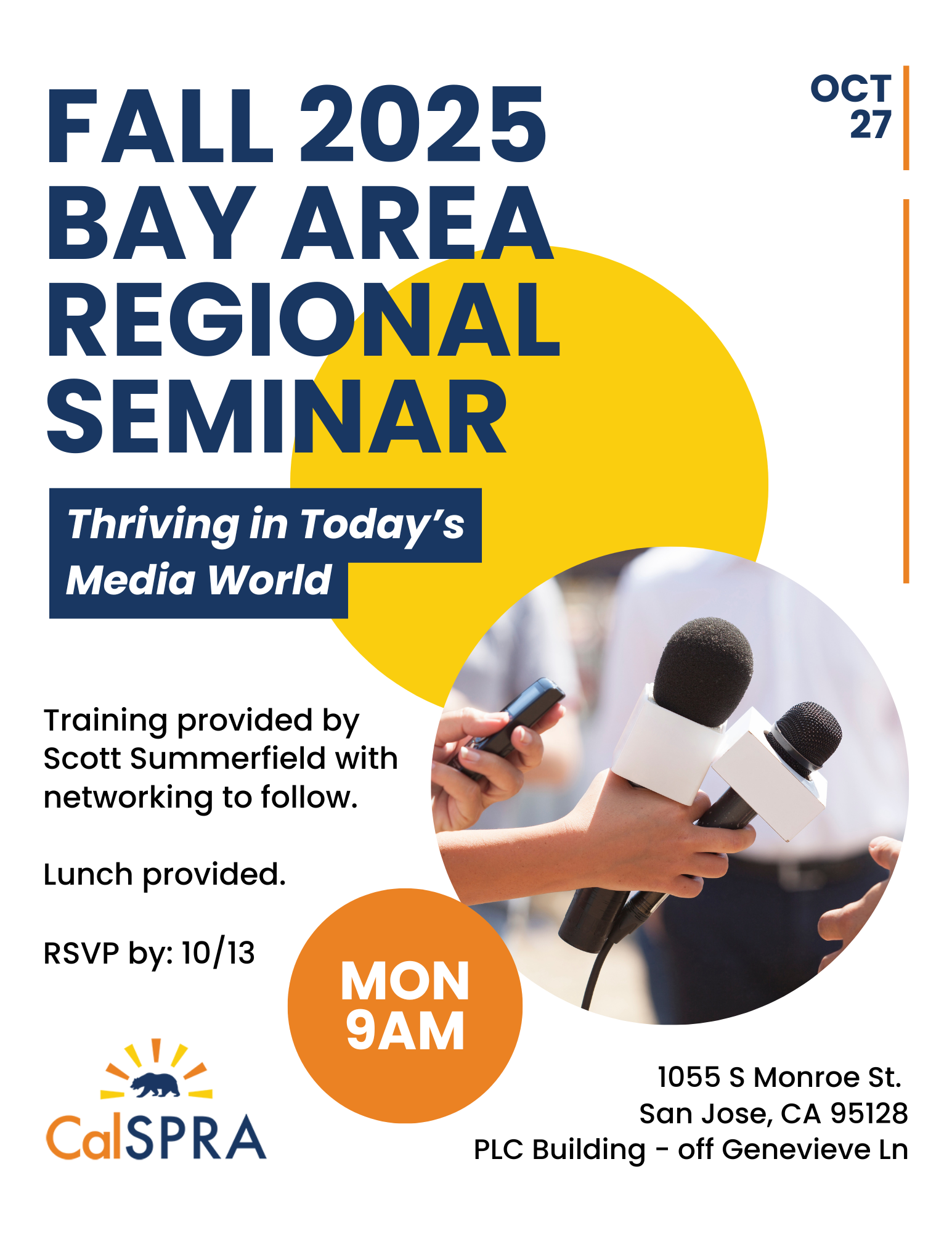 Join us as we welcome Scott Summerfield for a morning of learning and discussion about media relations in today's world. Afterward, we will enjoy lunch and those that wish can participate in an off-site networking event.